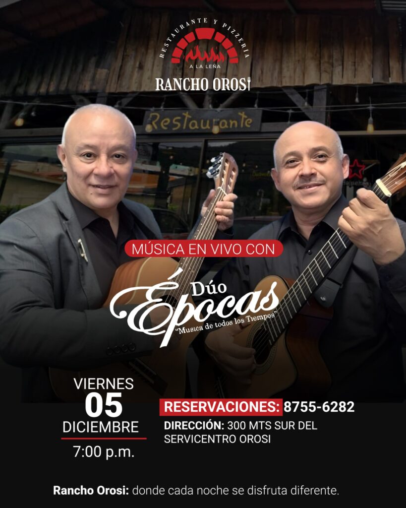 Los esperamos el próximo viernes 5 de diciembre en Restaurante y Pizzería a la leña Rancho Orosi.